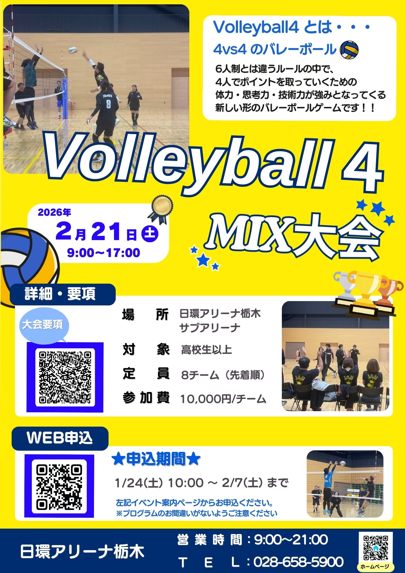 2026年2月21日(土)に Volleyball 4 MIX大会 を開催いたします🏐