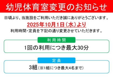 幼児体育室利用についての詳細はコチラをご確認ください。