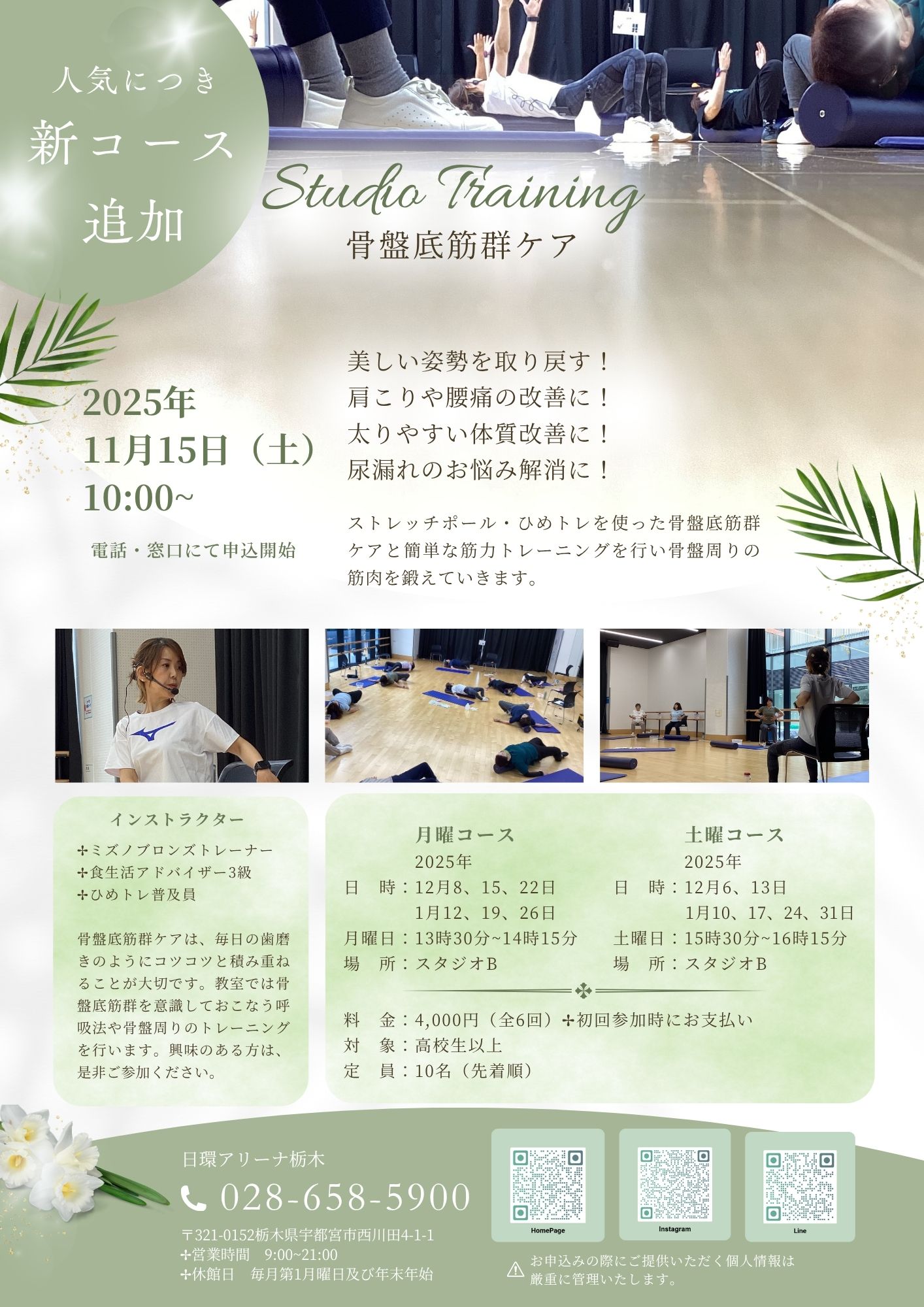 好評につき「骨盤底筋群ケア(クール制)」追加開催決定!!