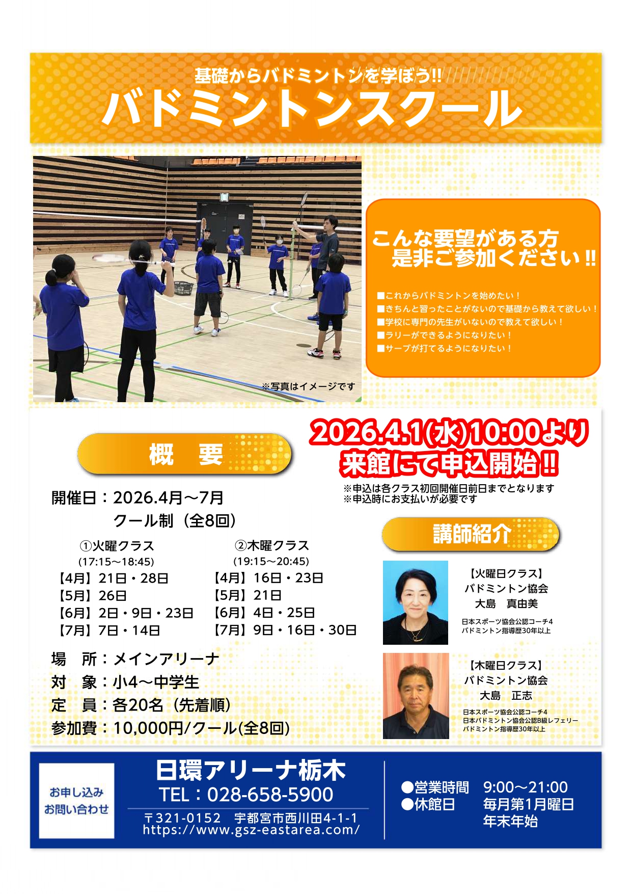 2026年4月より、バドミントンスクールを「クール制」教室としてリニューアル開催いたします!