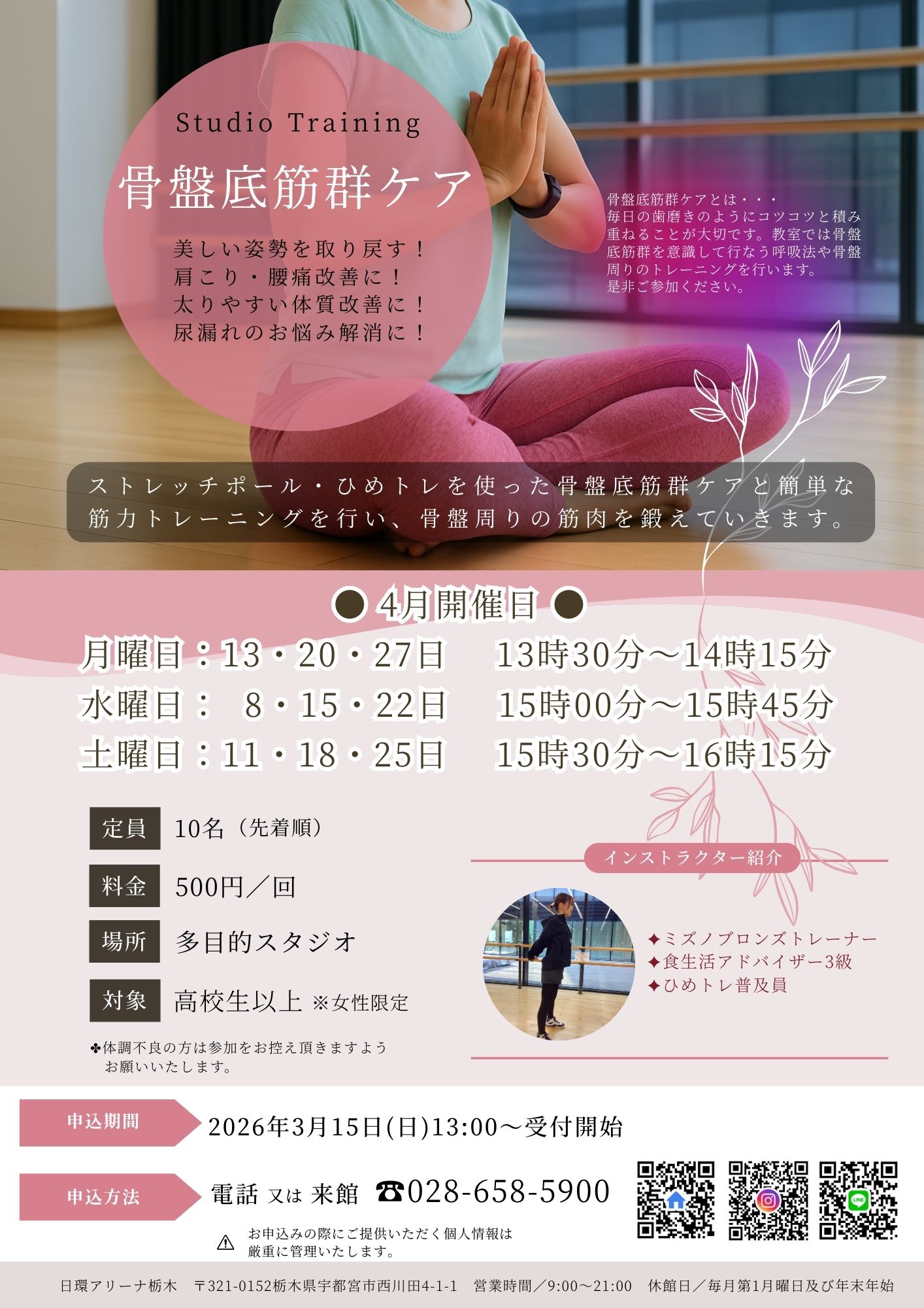 『骨盤底筋群ケア』4月は1回制で開催!!