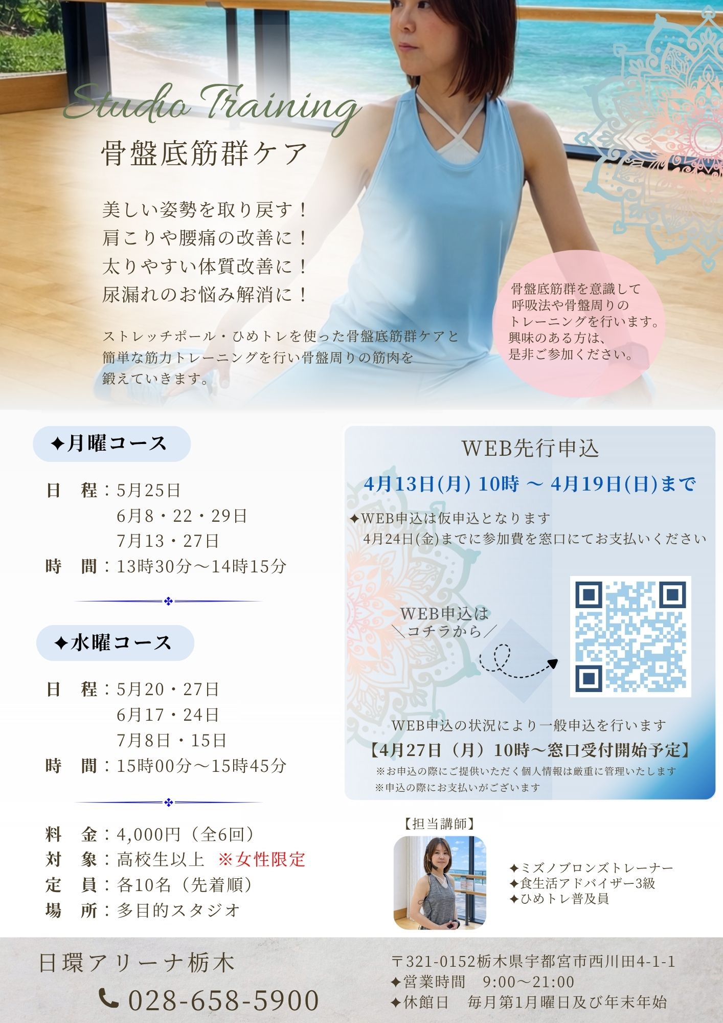 5~7月の骨盤底筋群ケアはクール制で開催いたします!!